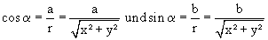 Weiterhin kann man zur einfacheren Rechnung für cos und sin folgende Zusammenhänge feststellen: